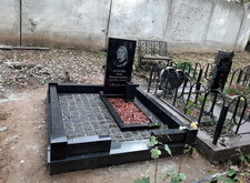 При работе над данным заказом нам предстояло полностью благоустроить могилу: изготовить памятник, уложить наземное покрытие и установить оградку. Приоритетом для клиента было качество работы, сочетающееся с разумной дешевизной. То есть мемориальный комплекс предстояло изготовить из гранита в строгих траурных тонах. Изначально на участке присутствовали лишь две таблички (с основной информацией о покойной и её фотографией) и металлическое ограждение.