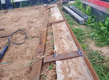 Для начала мы крепим к периметру цоколя металлическую планку, которая послужит бортом для брусчатки. Для придания необходимой жёсткости навариваем на железо необходимые элементы, тем самым надёжно закрепляя планку.