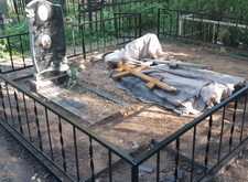 На данном участке нам предстоял достаточно большой объём работ. Надо было восстановить снятый памятник и привести в порядок место захоронения в целом.
